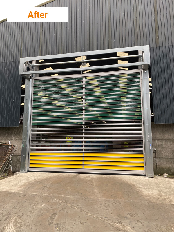 For this installation the client was looking to portion off the storage facility where grain and animal feed was stored. Previously the area used a traditional roller shutter which was deemed too slow and not fit for purpose. The opening speeds meant that the facility was left exposed to the elements and risk of the produce being eaten by opportunistic vermin or birds.