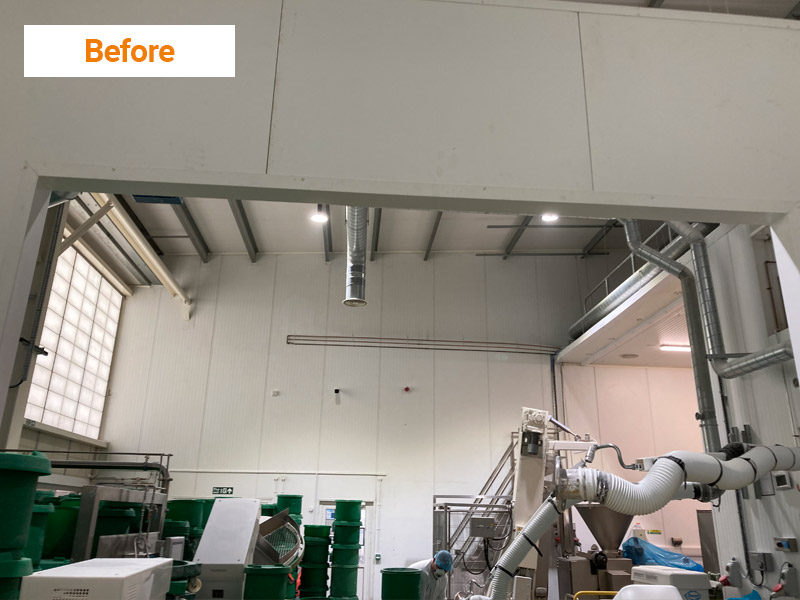 This is a new client to EFAFLEX and the installation follows a site visit completed in March 2022. They are part of a larger Group of companies, and specialise in crafting and baking premium gluten-free products. They supply artisan bread to the UK retail and sandwich market. We were asked to assist at their facility in Pontypool, where the production facility was virtually open plan and constructed using a free standing wall.