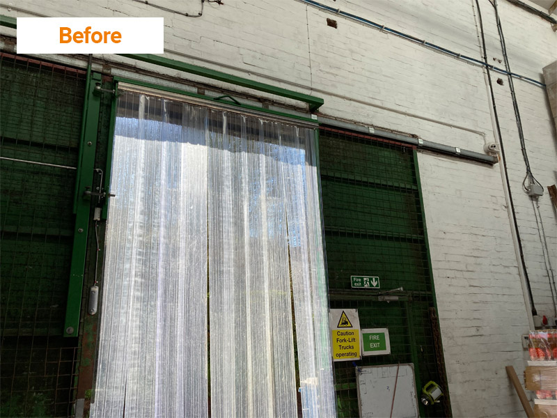As with all of our projects, the doors were made specifically for the aperture. At Sandford Orchards, the door space was an awkward shape, needing to fit around existing steels – as shown in the photographs below. Typical of EFAFLEX, our engineers worked to overcome the existing obstacles to ensure complete customer satisfaction.